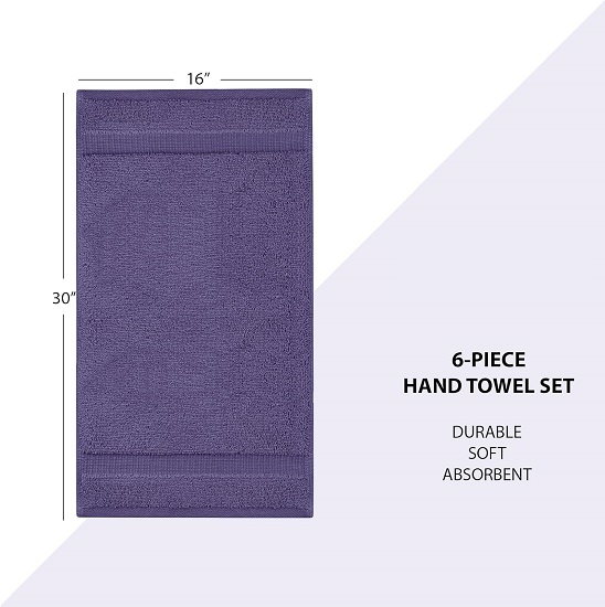 SET INCLUDES: This set consists of 6 hand towels sized 16 by 30 inches. These excellent and functional measurements are ideal for the everyday purposes of these towels.